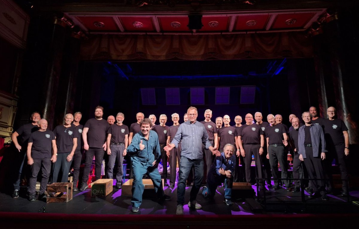 Mannskoret Nøkken var med i forestillinga "Hei og håp" av og med Marianne Meløy og Trygve Brøske